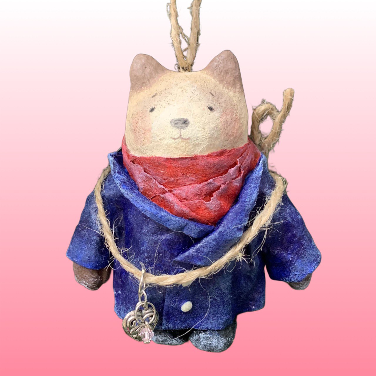 Крафтовая ёлочная игрушка из льняной ваты в виде собачки напомнит о добрых традициях детства. Изготовленная вручную по старинным техникам, эта игрушка привнесет особое тепло и уют в ваш праздничный декор.