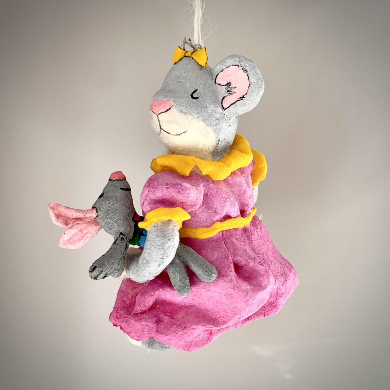 Крафтовая ёлочная игрушка из льняной ваты в виде розово-желтого слова из серии "Радужная" напомнит о добрых традициях детства. Изготовленная вручную по старинным техникам, эта игрушка привнесет особое тепло и уют в ваш праздничный декор.
